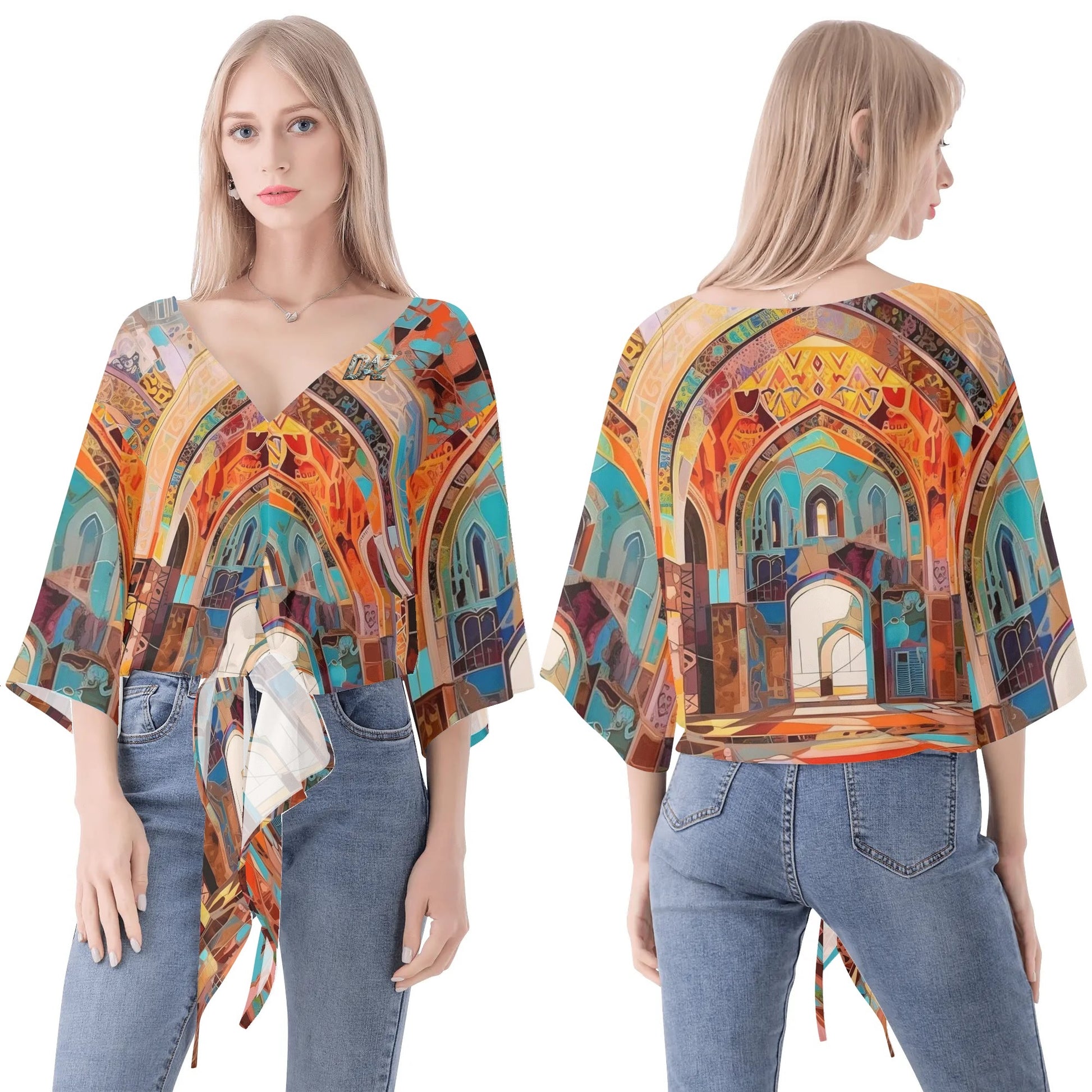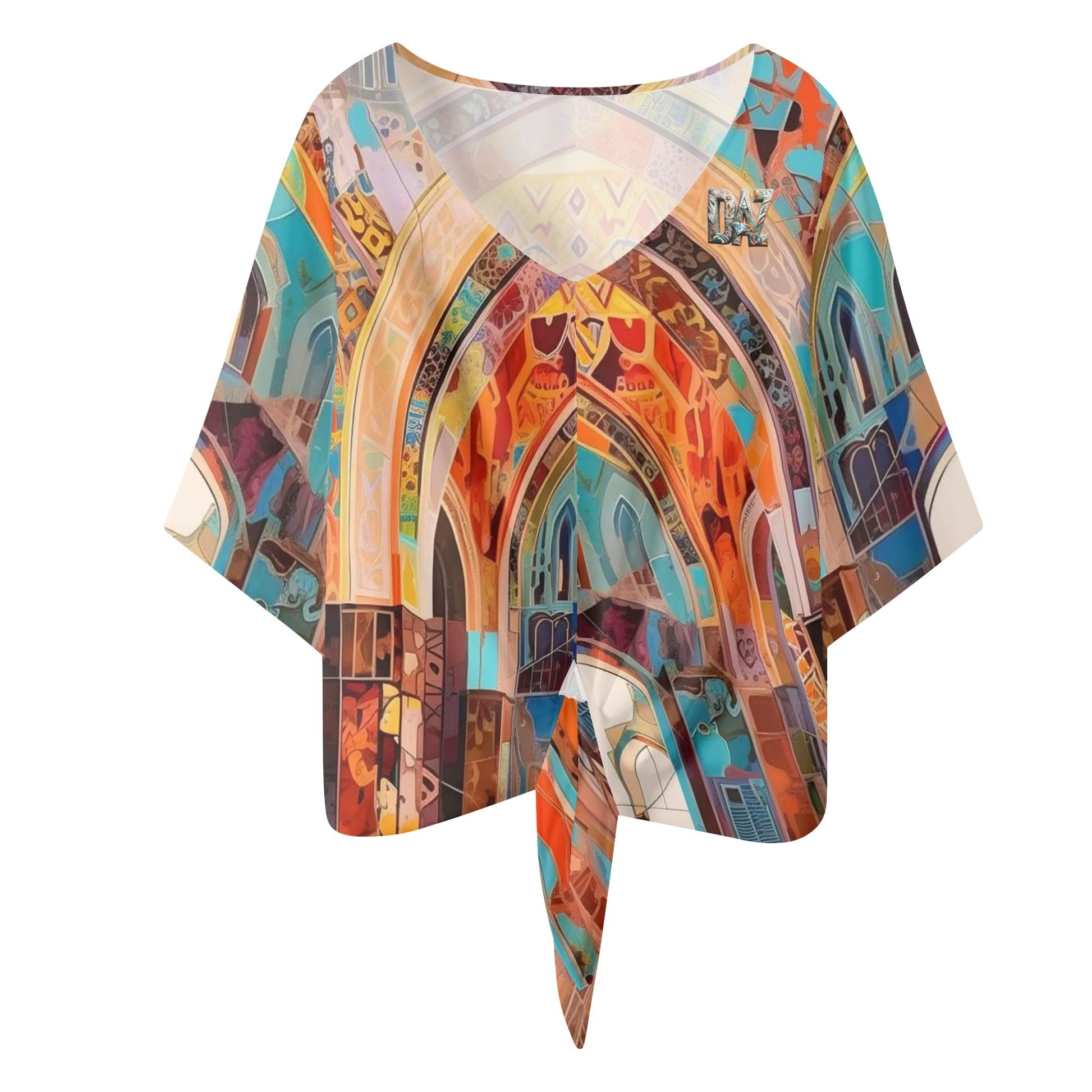 Blusa de gasa DAZ Premium con nudo delantero y escote en V para mujer