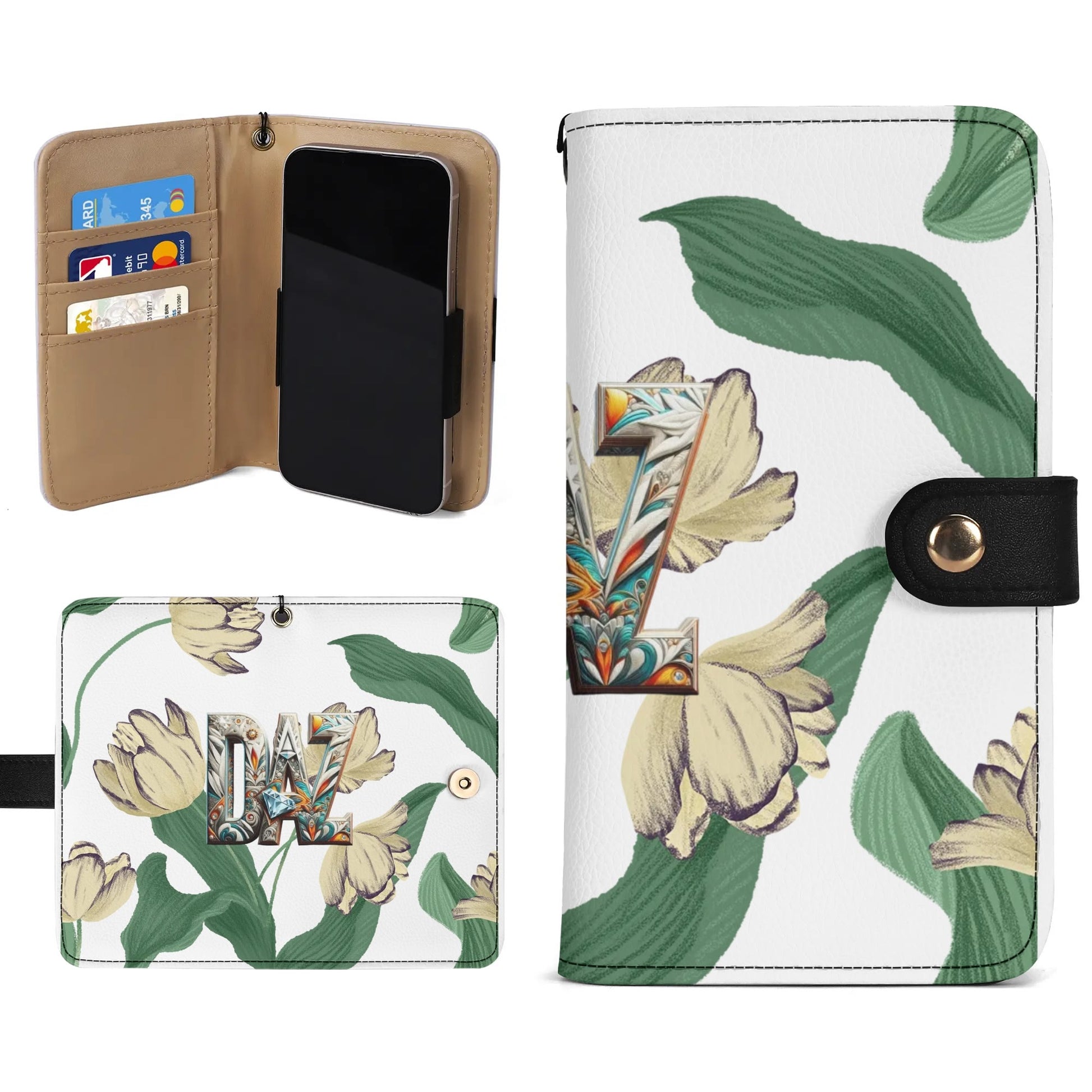 * Material: cuero sintético de alta calidad para funda tipo billetera para teléfono.
