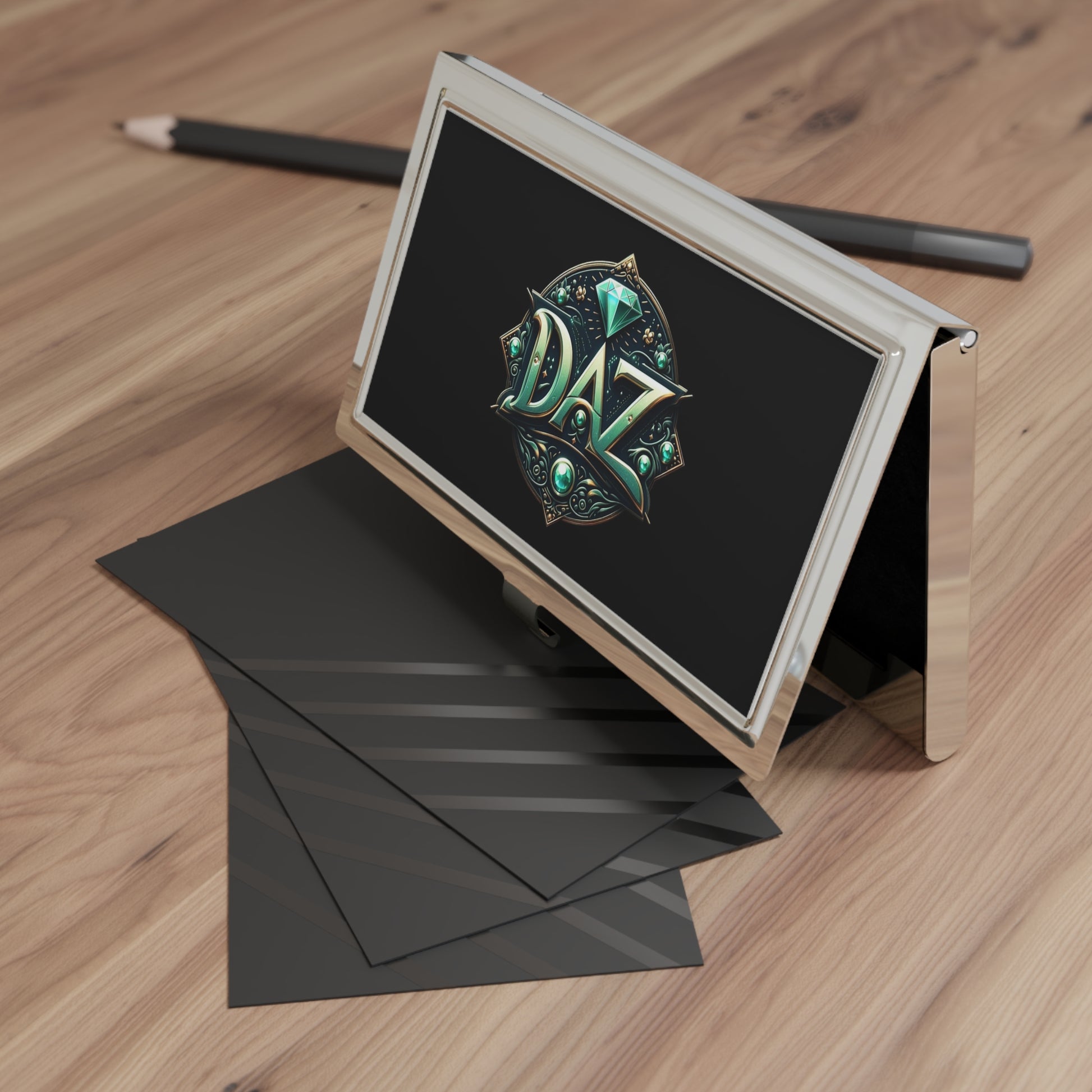 Este tarjetero personalizado está aquí para asumir su personalidad y añadir carácter a su publicidad. Viene completo con una elegante superficie de metal pulido, una base de almacenamiento interior similar a terciopelo y una capacidad para almacenar hasta 20 tarjetas de 3,5" por 2,0".